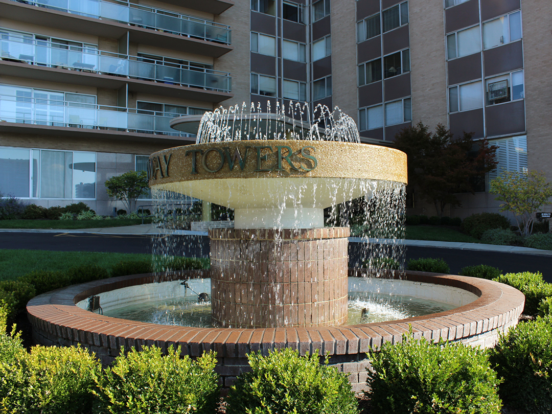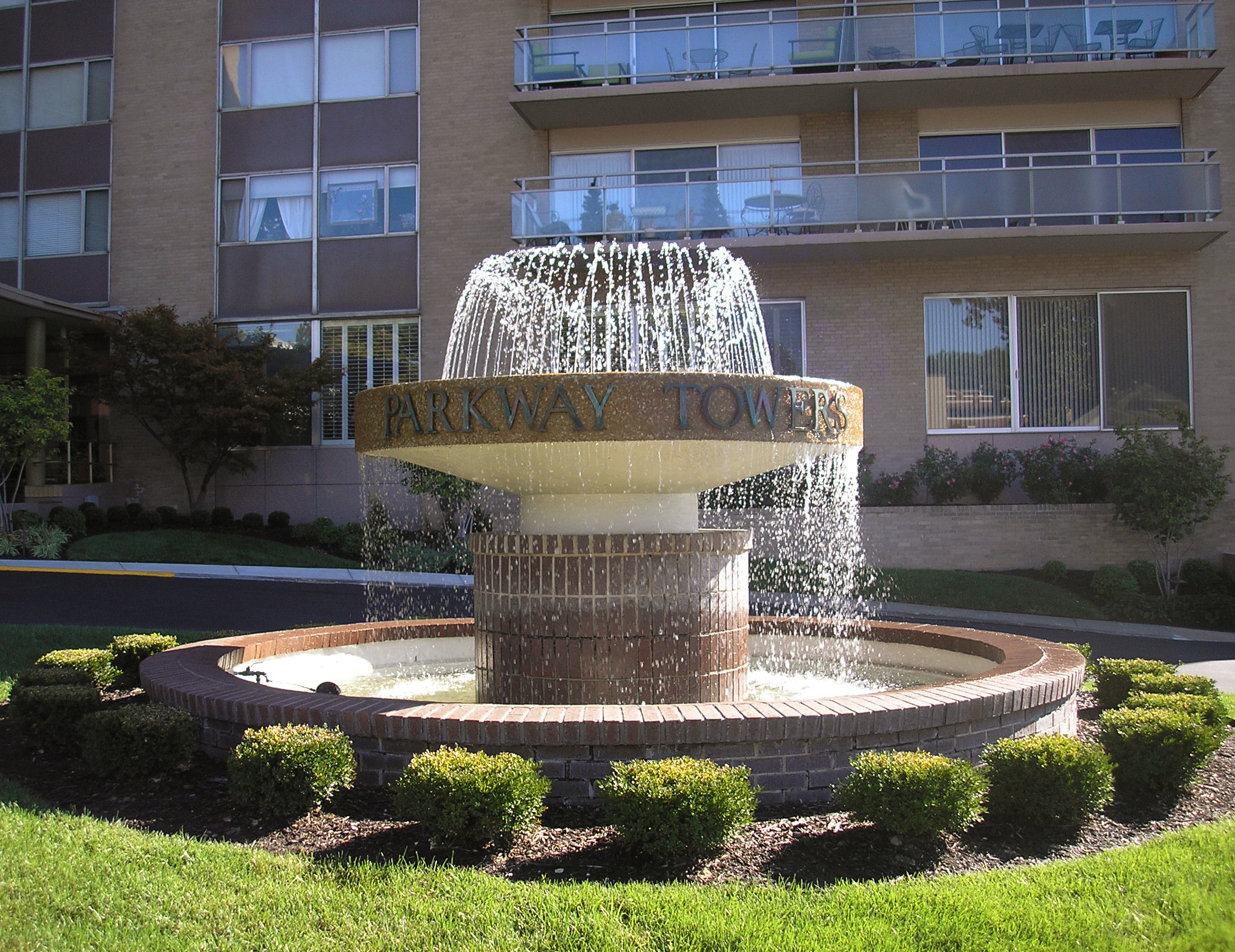Parkway Towers is just north of Country Club Plaza. They added what has become their signature fountain as part of a project to renovate and improve their entrance in 2009. Water streams out of a number of jets up top and falls down to the lower pool.
